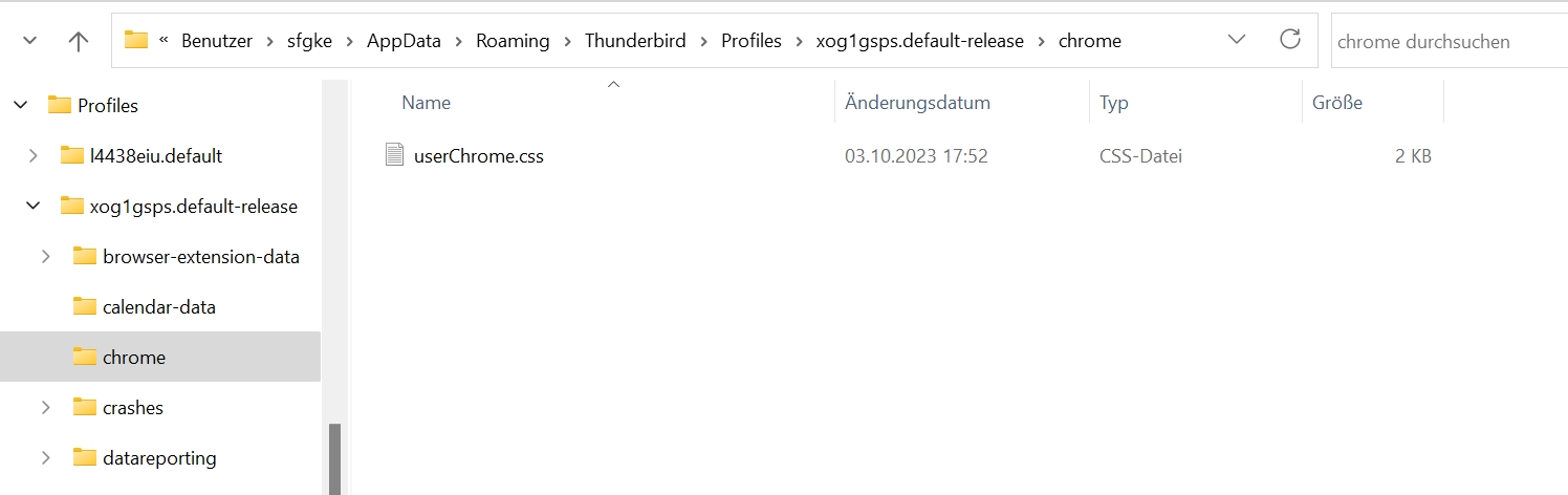 Und ja, der Ordner 'chrome' ist im richtigen Profil: xog1gsps.standard-release