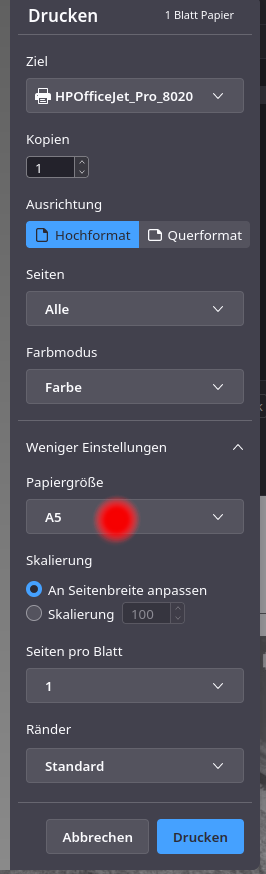 Wenn ich eine Mail herunterlade wird diese im A4 Format gespeichert was auch OK ist.