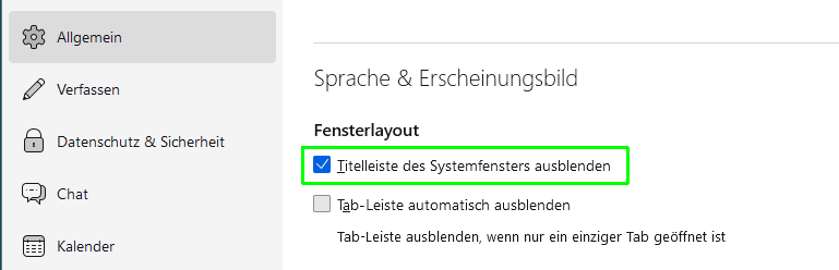 Ich habe jetzt mal den nachfolgenden Fix ausprobiert - dann noch den Haken bei "Titelleiste des Systemfensters ausblenden" in den Einstellungen weg und das ist wieder beim alten.