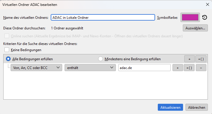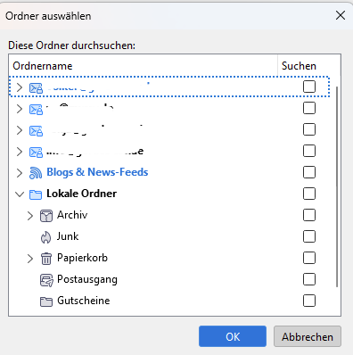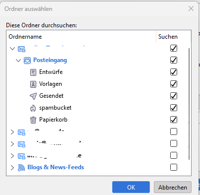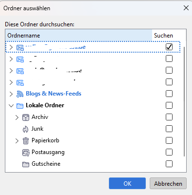 kann ich ja die Ordner auswählen, in denen gesucht wird. Wenn ich nun ein einzelnes Postfach anklicke: