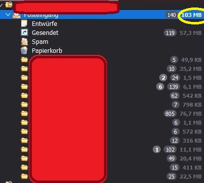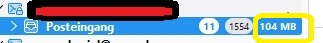 Auch die Mailboxgröße wird jetzt wieder im zusammengeklappten Zustand über alle Ordner addiert und neben den anderen