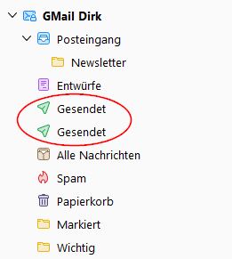 Es handelt sich um ein Konto von GMail, wo der Ordner "Gesendet" doppelt untereinander aufgeführt ist.