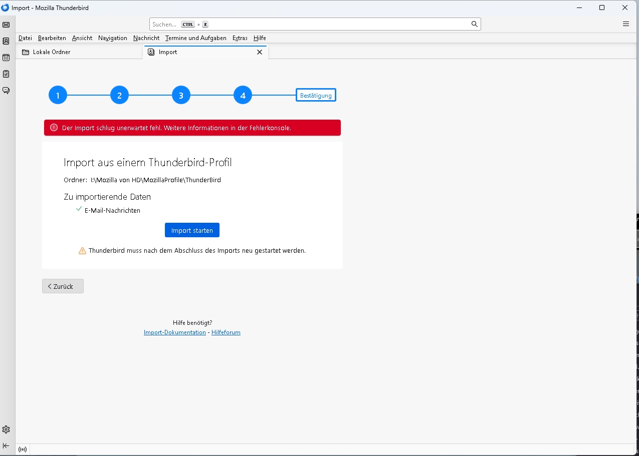 wenn ich den ImportExport von Thunderbird 120 nutze den mach er ein zip auf der HD aber wenn ich das den importieren will in den 115.3.2 Error und wurden nicht alles übetragen.