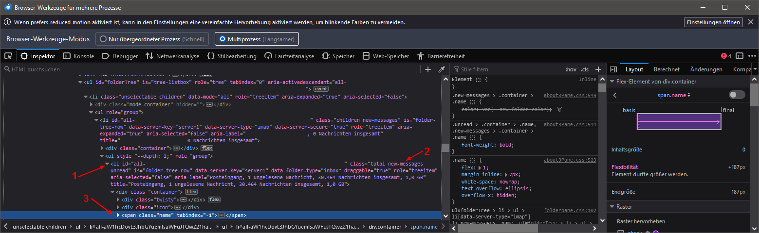Bis zur Installation von Thunderbird "Supernova 115.3.2 waren bei neuen Mails die Ordner rot eingefärbt, was ich seit Jahren über die userChrome.css gesteuert hatte.
