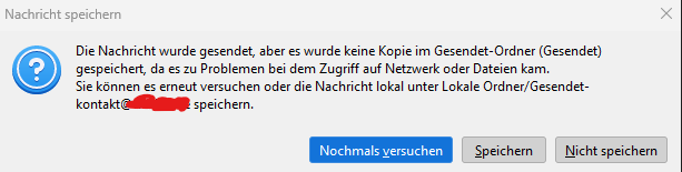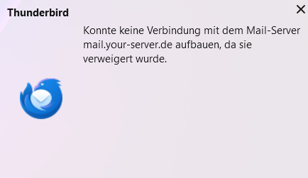 Mir ist aufgefallen, dass die Synchronisation schätzungweise alle 2-3h stattfindet. Dann ploppen in Thunderbird kurz alle E-Mails der letzten 2-3h im Posteingang auf. Als würde jemand kurz den Stecker einstecken, und innerhalb von 10 Sekunden wieder austecken. Wenn ich auf die Mails antworten möchte, erscheinen die folgenden Meldungen: