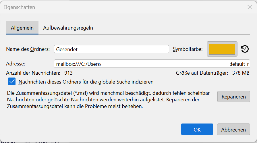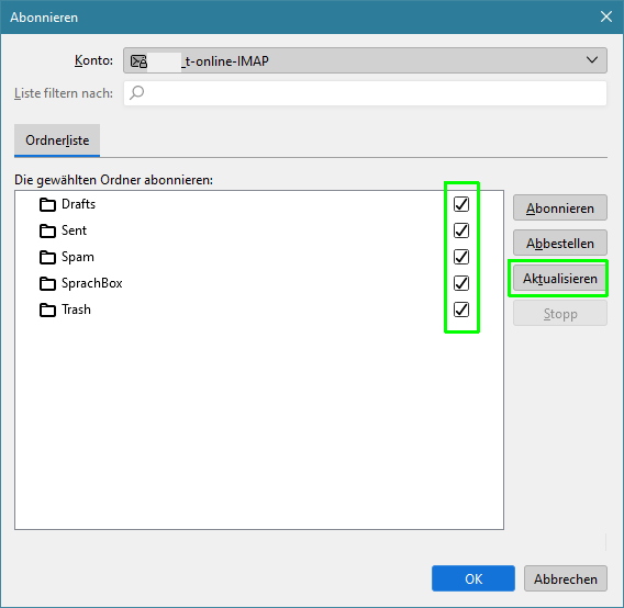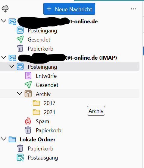 Leider funktioniert das auf dem neun Rechner nicht mehr, empfangene E-Mails werden zwar auch mit Thunderbird abgerufen und lokal abgelegt, aber nicht die wie oben versendeten.