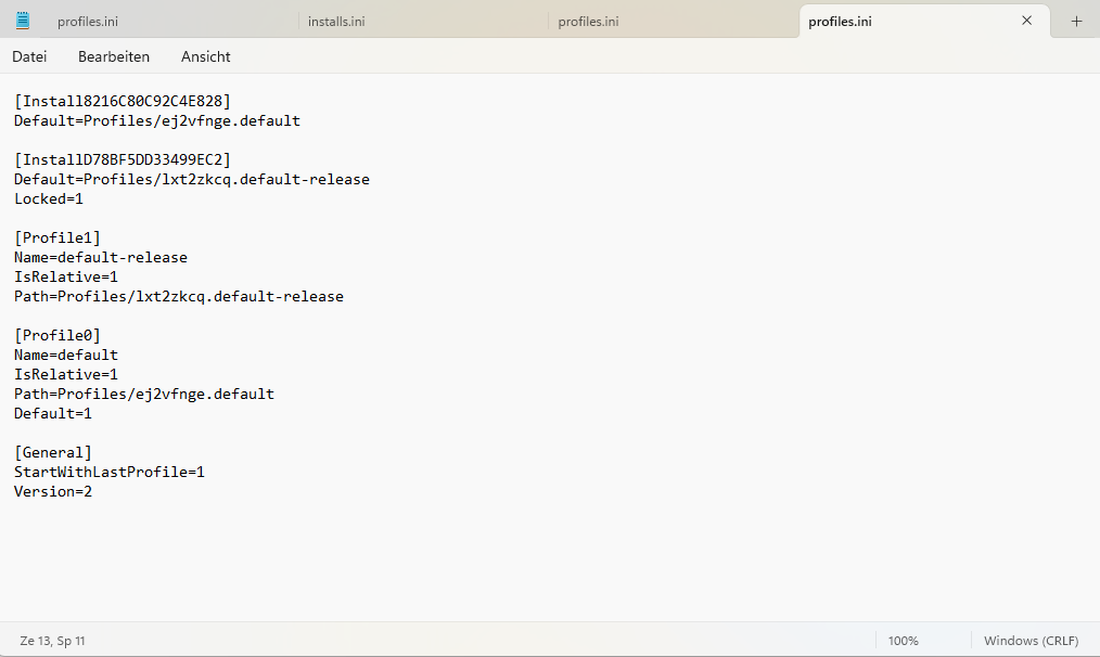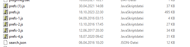 Es sind inzwischen 2 Profilordner vorhanden. In meinem ursprünglichen befinden sich mehrere prefs.js (-1-4) Dateien, mit Änderungsdatum 2016 bis 2023. Ich habe gelesen das diese Datei beschädigt sein kann und der Zugriff auf das Konto damit nicht möglich ist.