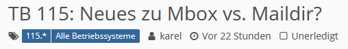 Bei jedem neuen Versionszweig frage ich mich, ob es was Neues gibt, und ich mein Jahrzehnt Mails in lokalen und Imap-Foldern umstellen sollte. Sowohl hinsichtlich der technischen Ausgereiftheit in TB wie auch Pros und Cons der beiden Formate.
