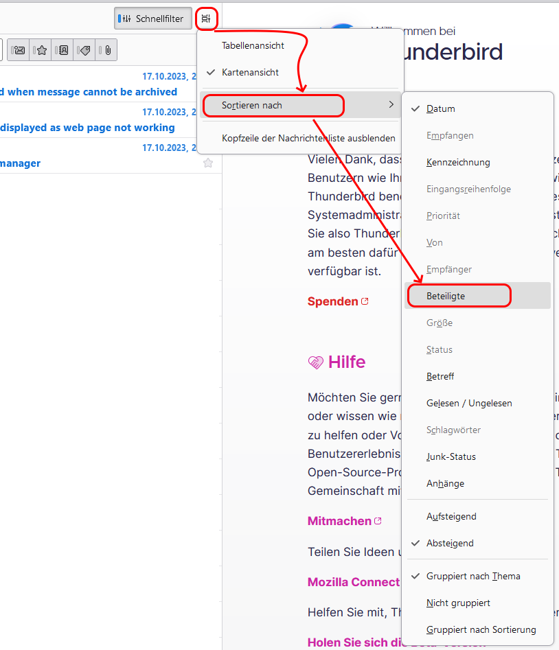RE: Posteingang nach Absender alphabetisch sortieren