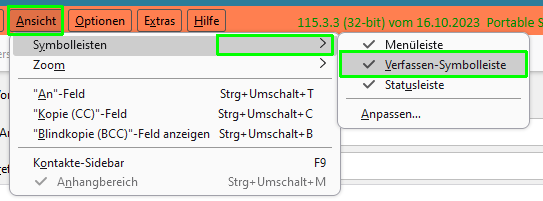 Dann ist die Verfassen Symbolleiste wohl ausgeblendet.
