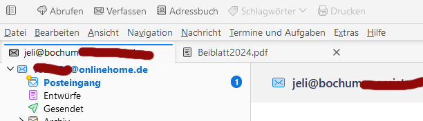 Nach dem letzten Update sieht mein TB etwas Anders aus. Es gibt eine neue Kopfzeile mit den Buttons "Abrufen", "Verwassen", "Adressbuch" usw. Siehe angehängten Screenshot. Das ist so o.k., aber etwas "gewöhnungsbedürftig".
