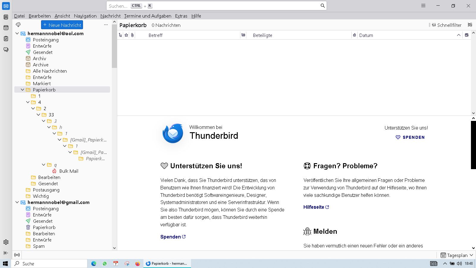 Diese Aufräumarbeiten im Papierkorb funktionieren ggf. besser im Webinterface als in TB.