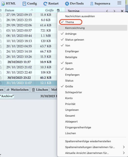 Mein Problem: in der Ergebnisliste werden ab Version 115 Supernova gefundene Nachrichten automatisch nach Themenbaum sortiert und ich muss alles relevante aufklappen, um die gesuchte Nachricht zu finden.
