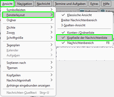 Ich suche den Knopf, mithilfe ich unter anderem die Themen-Ansicht (roter Pfeil) ausschalten kann. Sie hat sich früher rechts oben, oberhalb des Knopfes "Anzuzeigende Spalten auswählen" (rote Elipse) befunden. Ich wäre dankbar über einen Hinweis, wie ich diesen Knopf wieder erscheinen lassen kann.