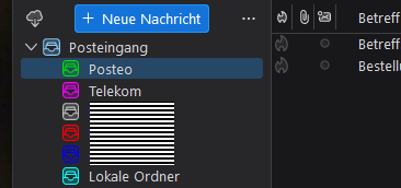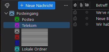 Die einzelnen Konten erscheinen als Unterordner für den "globalen" Posteingangsordner,