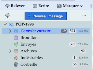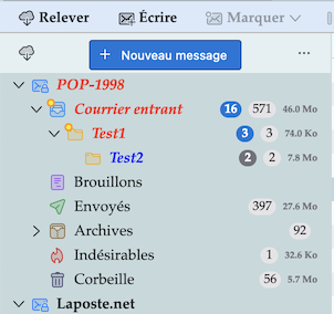 zur roten Kennzeichnung von Ordnern und Unterordnern bei neu herunter geladenen Mails funktioniert auch nur, wenn ich die entsprechenden Orderhierarchien geöffnet anzeige (siehe mein Bild in Beitrag #18). Wenn ich dort den Posteingang (Courrier entrant) zuklappe, sieht das so aus: