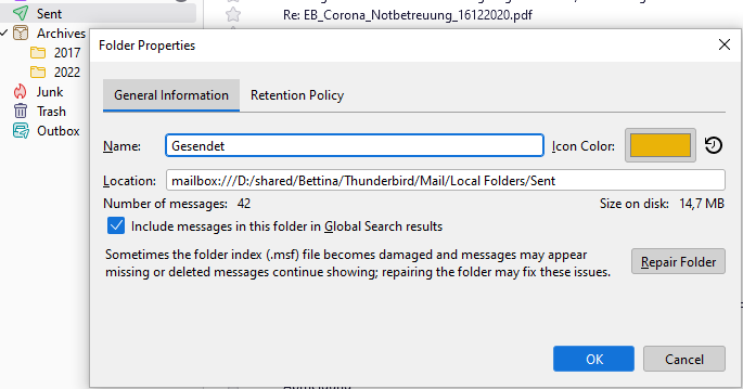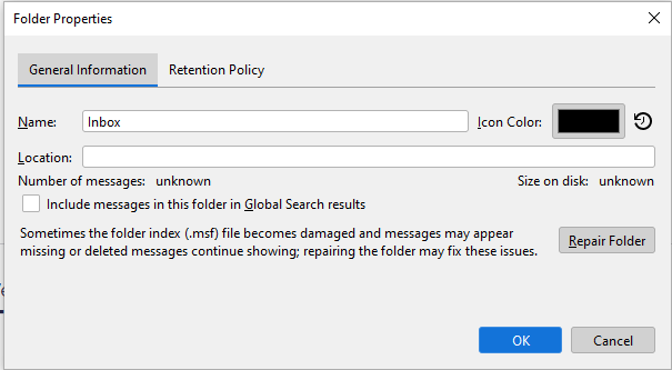 Es fehlt der Eintrag Location in den Folder proberties bei inbox, ![]()