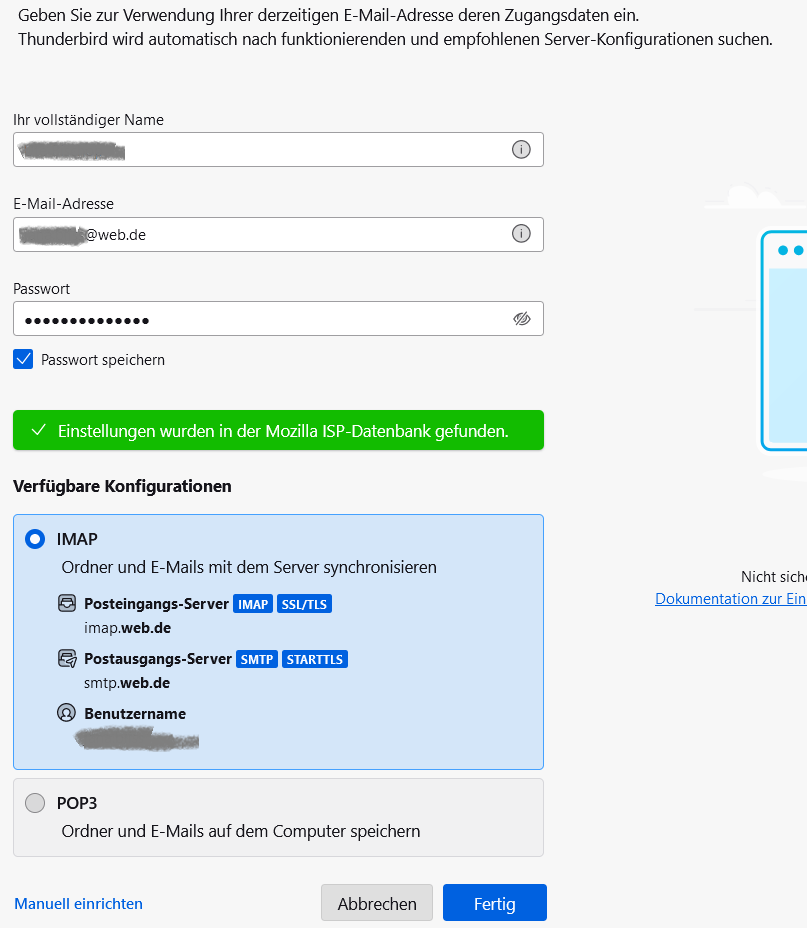 Da ich mich auch hier direkt über web.de problemlos anmelden kann, muss es ja wohl an der "Konfiguration" liegen.