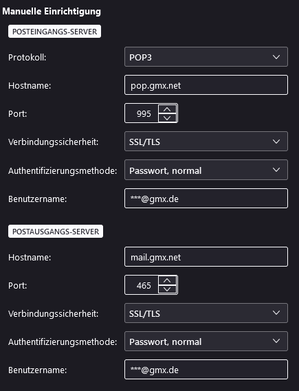 - Server: mail.gmx.net