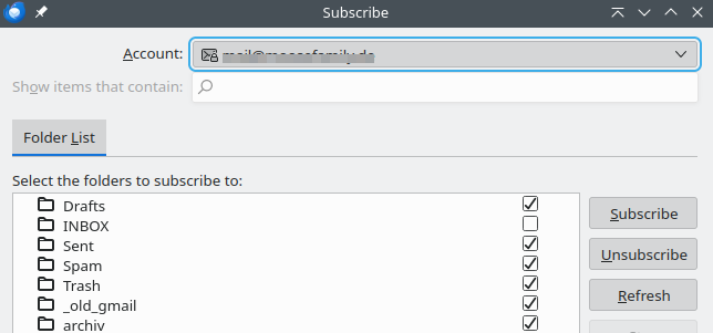 danke für's Lesen. Ich meine den Filter beim Subscribe also beim Abonnieren von IMAP Ordnern...