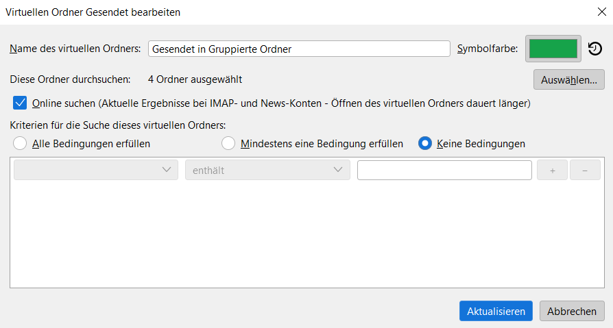 Am Beispiel von 'Gesendet' unter 'Gruppierte Ordner':