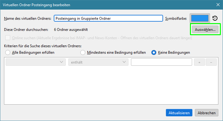 Auf Auswählen klicken, dann geht eine lange Liste auf, in der die zur Ansicht gewünschten Ordner angehakt,