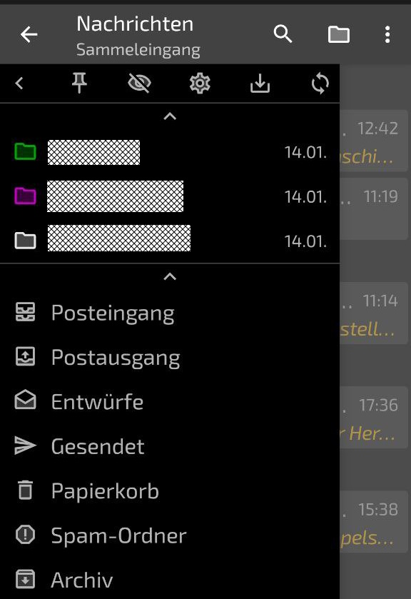 Am Beispiel von 'Gesendet' unter 'Gruppierte Ordner':