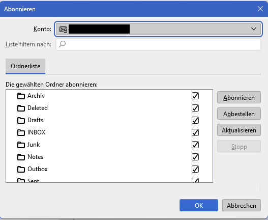 das habe ich alles probiert. Schon vor meiner Frage hier mit Hilfe von Chat GPT. Unter Abonnieren wird der Ordner "Ungelesen" auch nicht aufgeführt.