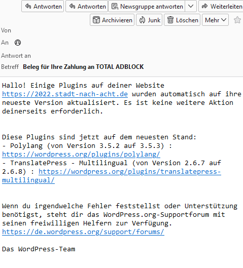 Zwei verschiedene Mails, beiden den selben falschen Betreff - und zweimal die Schaltfläche "antworten"...