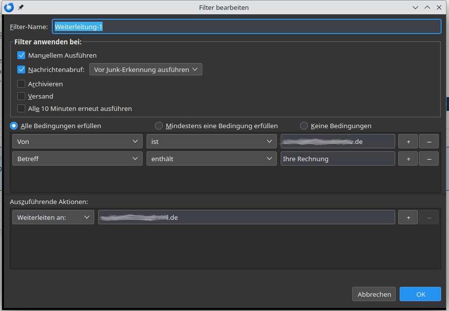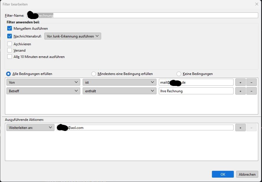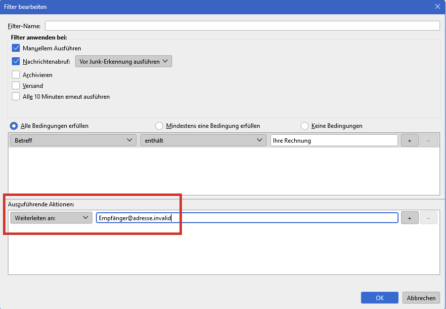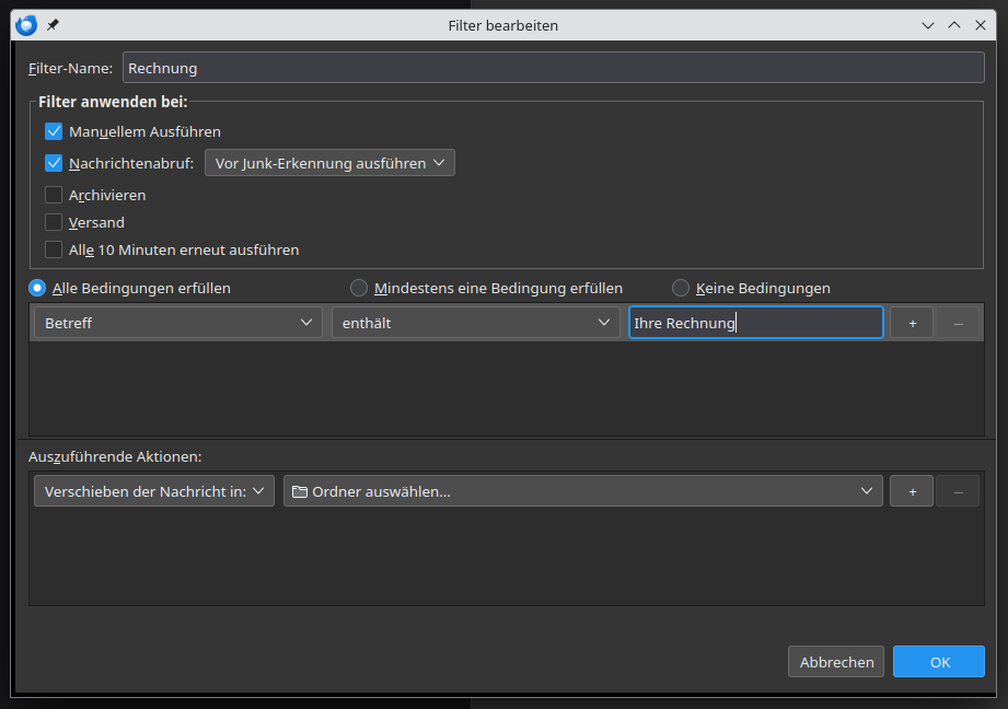 Moin, ich möchte einen Filter erstellen und dabei eine Bedingung "Betreff" verwenden.