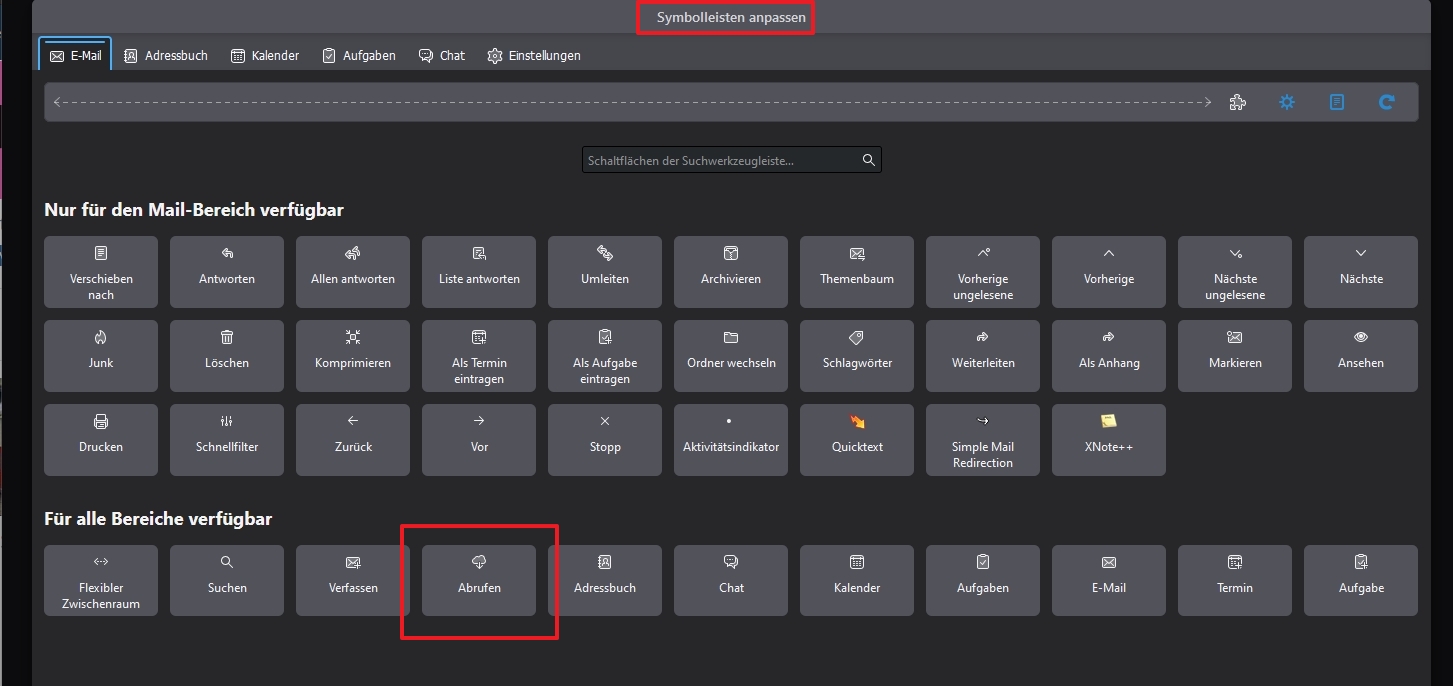 Früher hatte ich dieses get+ Receive Button der immer alle Konten abgerufen hat. Jetzt ist er nicht mehr kompatibel mit der 115.5.2 (64-Bit) Version.