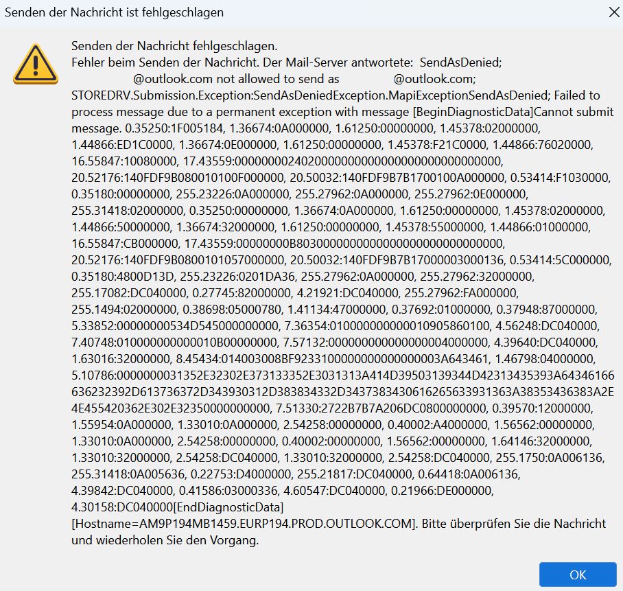 Hallo, ich bekomme beim Senden immer Mal wieder die gleiche Fehlermeldung. (2 unterschiedliche Email Adressen im Screenshot oben in der Fehlermeldung hab ich zensiert)