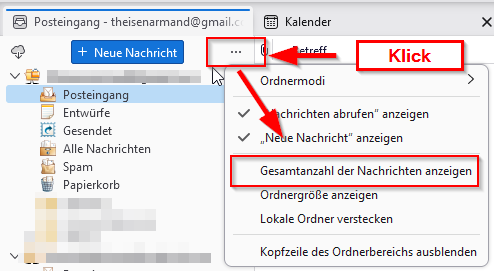 versehentlich hatte ich über ein Icon aktiviert, dass bei den Ordnern nicht nur angegeben wird, wieviele ungelesene Mails enthalten sind sondern zusätzlich alle Mails im Ordner. Letzteres stört mich jetzt. Leider finde ich aber nicht mehr ein Icon, um dies zu unterbinden.