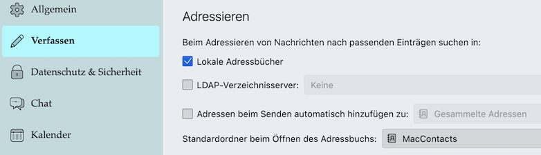 Was ist denn bei dir in Einstellungen > Verfassen > Adressieren ... eingestellt?