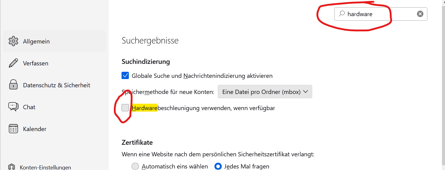 Ich habe das mit der deaktivierten Hardwarebeschleunigung auch vorgeschlagen. Du hast dazu bisher nix geschrieben ob du das getan hast.