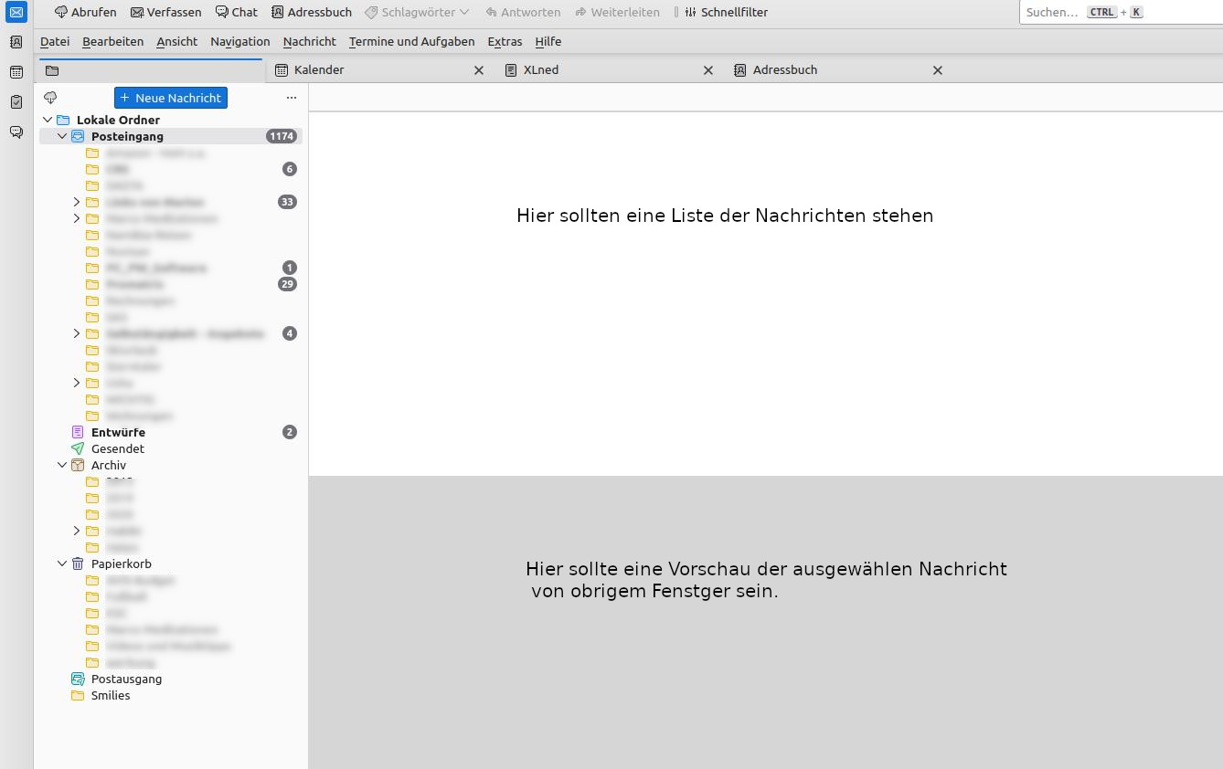 leider ist seit heute das Fenster mit den Nachrichten leer, obwohl im Postfach noch Nachrichten sind. Filter ist keiner gesetzt.