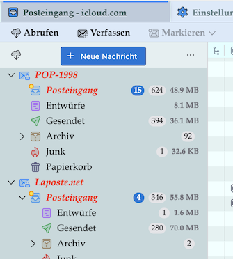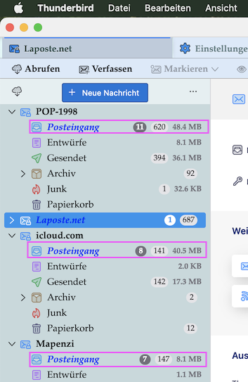 seit einigen Monaten kann ich ungelesene Nachrichten zwar als rot markierte Zahl beim TB-Item im Dock sehen, aber in der Liste der eMailkonten (bei mir mehr als 23!) werden sie nicht hervorgehoben. Bei wenigen Konten spielt das keine Rolle, denn man lässt diese einfach offen, sodas s man alle Posteingangs-/Sent-Items-/Junk-/Papierkorb-Ordner im Blick hat. Bei so vielen Konten wie bei mir müsste ich ständig scrollen, weil der Bildschirm nicht hoch genug ist - also schließe ich alle Menüs und öffne nur bei blaufett hervorgehobener neuer Nachricht. Doch wenn ich die betreffende Nachricht (noch) nicht lese und das betreffende Kontenmenü schließe, wird dieses Konto nicht mehr hervorgehoben. Das ist ziemlich lästig und bei vielen Konten auch zeitraubend.