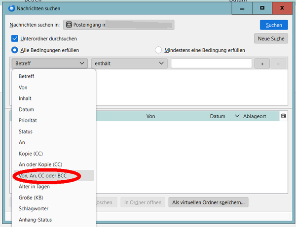 es scheint so zu sein, dass die Suche nach bestimmten Empfängern diejenigen, die im bcc-Feld stehen nicht berücksichtigt. Wie kann ich das ändern?