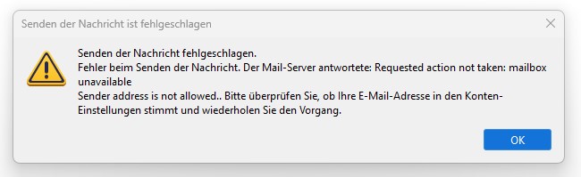 Der Mail-Server antwortete: Requested action not taken: mailbox unavailable