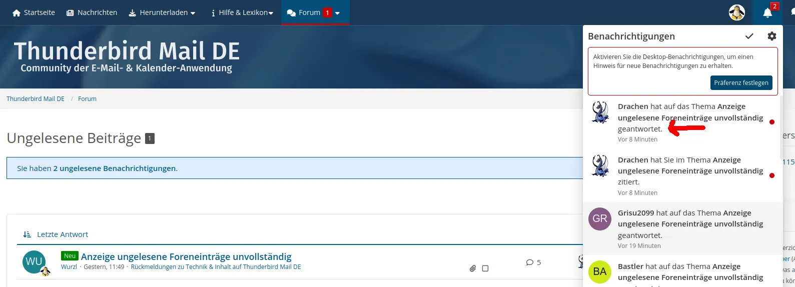 Auf der Haupt-Foren-Übersichtsseite werden mir keine ungelesenen Einträge bei den Einzelforen angezeigt. Ich komme nur dann an die noch offenen Einträge, wenn ich gezielt im Haupt-Menü "Ungelesene Beiträge" aufrufe.