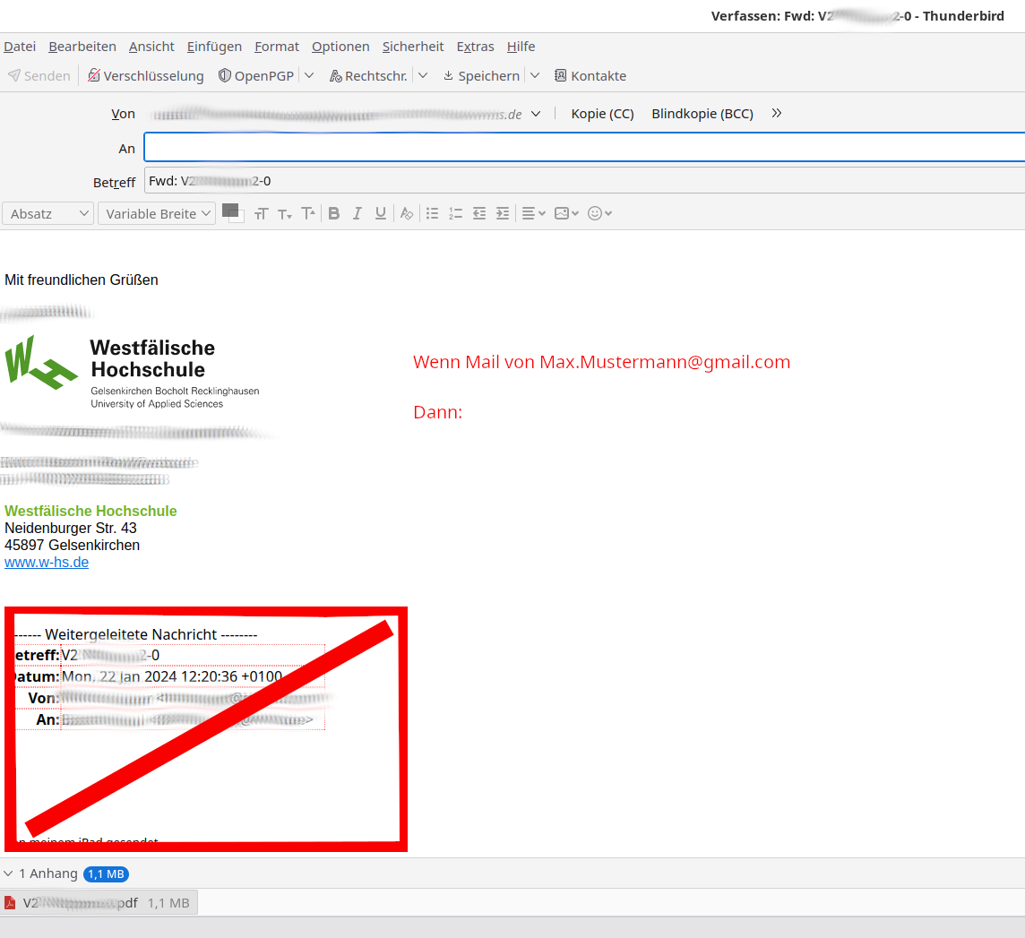 Email einer Adresse ohne ursprünglichen Inhalt, aber mit Anhang weiterleiten