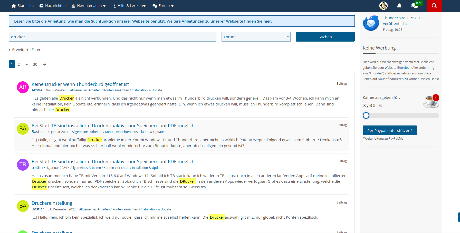 Ich habe folgendes Problem: Wenn Thunderbird läuft, habe ich keinen Zugriff auf einen Drucker. Es gelten alle Drucker als nicht verbunden. Und das nicht nur wenn man etwas im Thunderbird drucken will, sondern generell.