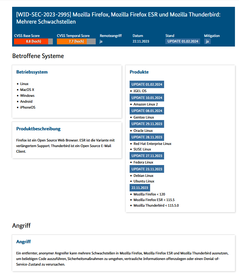 1. Februar 2024 um 17:14 #1 Hier mal eine aktuelle (von heute Morgen) Information des BSI/ CERT Bund: