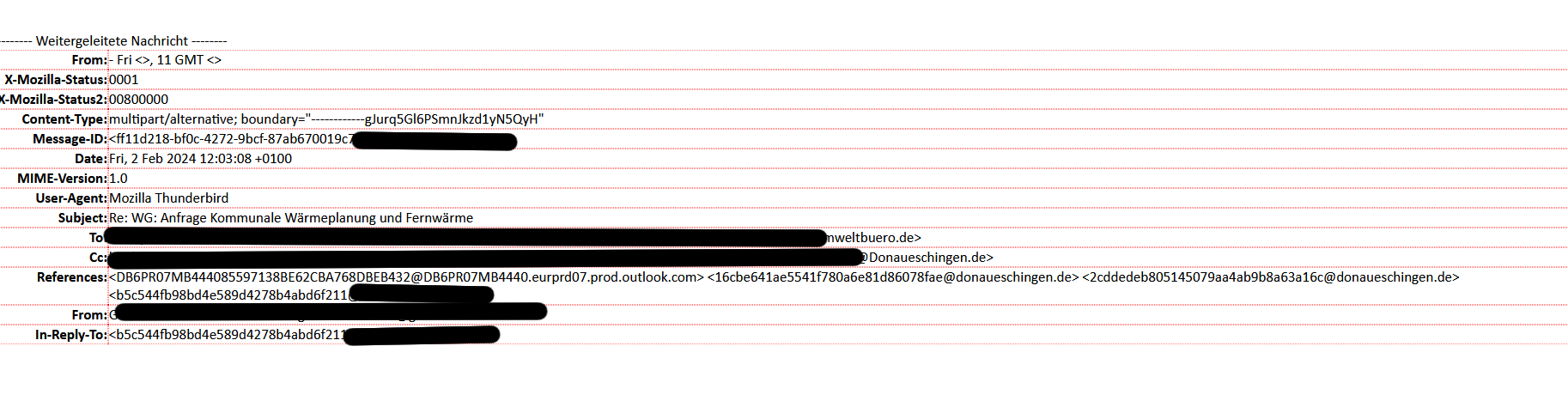 Seite einiger Zeit wird in weitergeleitete Mails (und nur in Sie!) ein Block mit Metadaten eingefügt, der bei manchen Mails 40-50- Zeilen betragen kann. Wie bekomme ich den wieder los (ohne ihn jedesmal manuell zu löschen)?