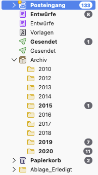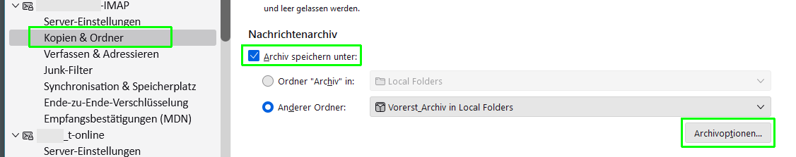 Wohin, in welchen Ordnerbaum, auch automatische Jahresarchive, kann in den Konten-Einstellungen definiert werden.