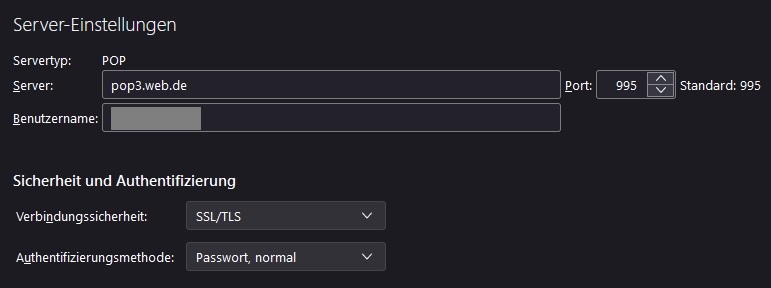 Posteingang: pop3.web.de Port 995