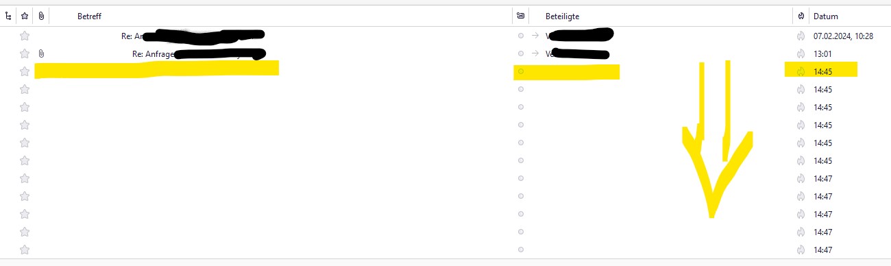 Wenn ich über die Suchfunktion gehe (Strg+Alt+F) findet man den Mailverlauf wie zuvor, aber LEER.