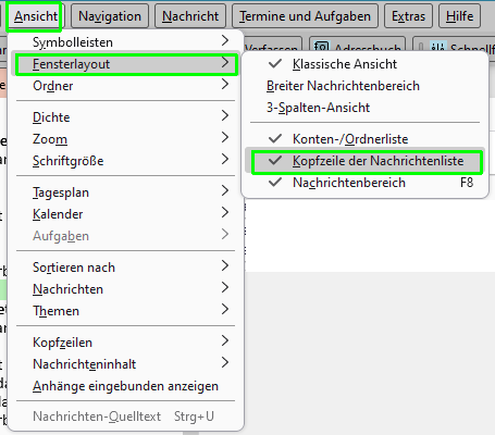 Der eine zeigt diese Mailliste, wie sie immer war, kompakt und einzeilig.