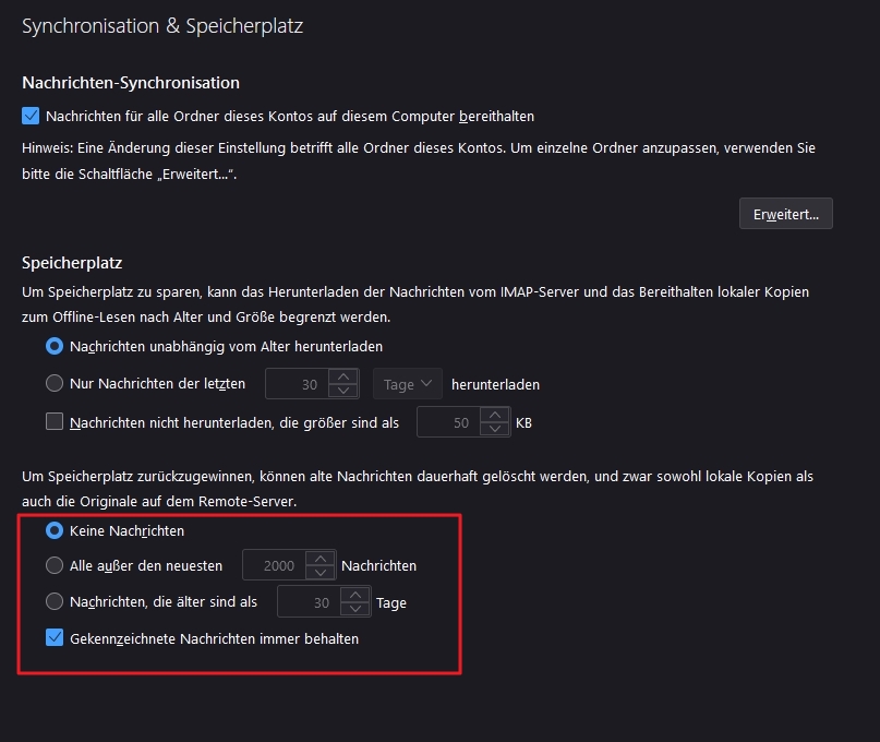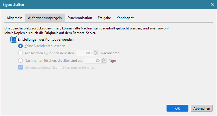 mir fällt seit längerem auf das meine alten Emails älter als 12 Monaten automatisch verschwinden und nirgends zufinden ohne das ich SIe manuell gelöscht habe.(Also muss das autoamtisch laufen)
