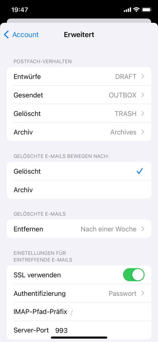 Es kann sein das ich vor über 1-2 Jahren das vielleicht irgendwo eingestellt habe. Jedoch ist bei Thunderbird nichts derartiges eingestellt und bei Vodafone finde ich dazu keine Einstellungen.